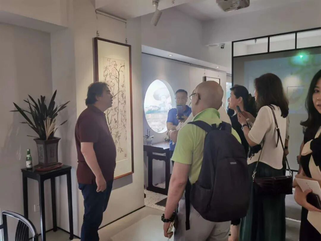 宋文京老师指出:“欣赏中国名人字画作品是我们认识和了解名人字画的必经之路,也是我们做名人字画收藏与投资的途径,因此,中国名人字画欣赏要素这几点非常适合广大爱好和收藏名人字画的朋友”。 宋文京老师现场为青岛市人大代表培训服务中心题字 宋文京老师现场指导艺研班的同学们,吸取相关知识。 二、朴庐美术馆《张朋先生画展》 三、青岛铭史堂工匠艺术博物馆 一天的中国书画主题沙龙活动,艺研班的学员们收获很多,中国书画传承千年,讲究画意更为画人。西方画家,欣赏者往往只观其画而不理画家的私德。中国人不同,画家或书家如行为不检、道德败坏、声名狼藉、大奸大恶者,即使其书法美术如何精美,亦无人问津。试问谁家高悬秦桧等奸臣作品,而岳飞的"还我河山",孙中山的"天下为公"成为人尽皆知的好匾额,就是这个道理。书画不仅仅是简单的图画,更能给我们带来工作生活中为人为友的思想启迪。翰砚名书楷上流,墨端润笔隶诗酬。情倾泰斗行神韵,缘帖山峰草篆秋。文化传承其实也就是中华美德的传承,也只有这样才会让五千年华夏文明源远流长~